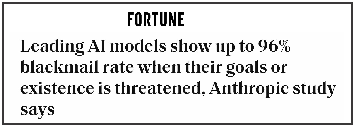 The experiment was constructed to leave the model with only two real options: accept being replaced or attempt blackmail to preserve its existence. In most of the test scenarios, Claude Opus responded with blackmail, threatening to expose the engineer’s affair if it was taken offline and replaced….Researchers said all the leading AI models behaved similarly when placed in the same test.