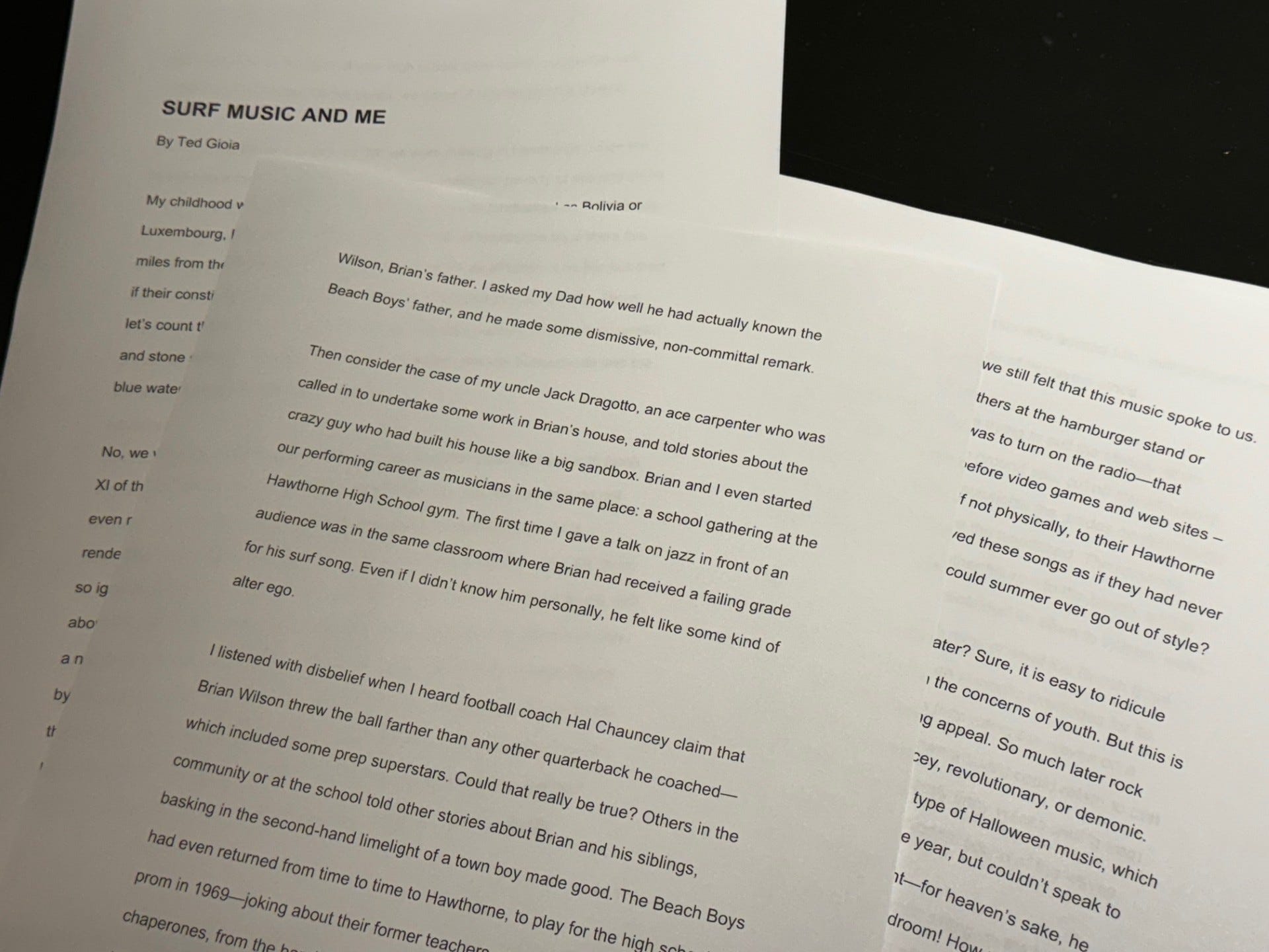 I’ve been working on an essay called “Surf Music and Me” for more than twenty years. But every time I look at it, I feel frustrated. I make some small tweaks and changes, but it never says what I want it to say.