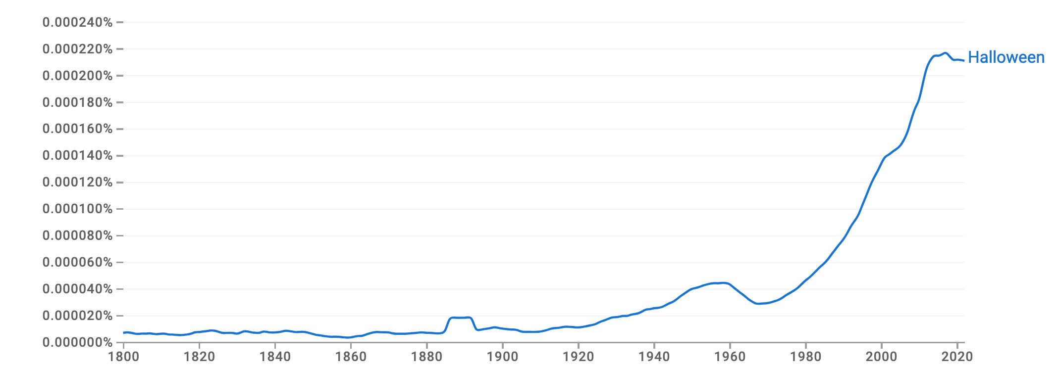 Here’s a measure of the use of the word “Halloween” over time. Are you surprised?