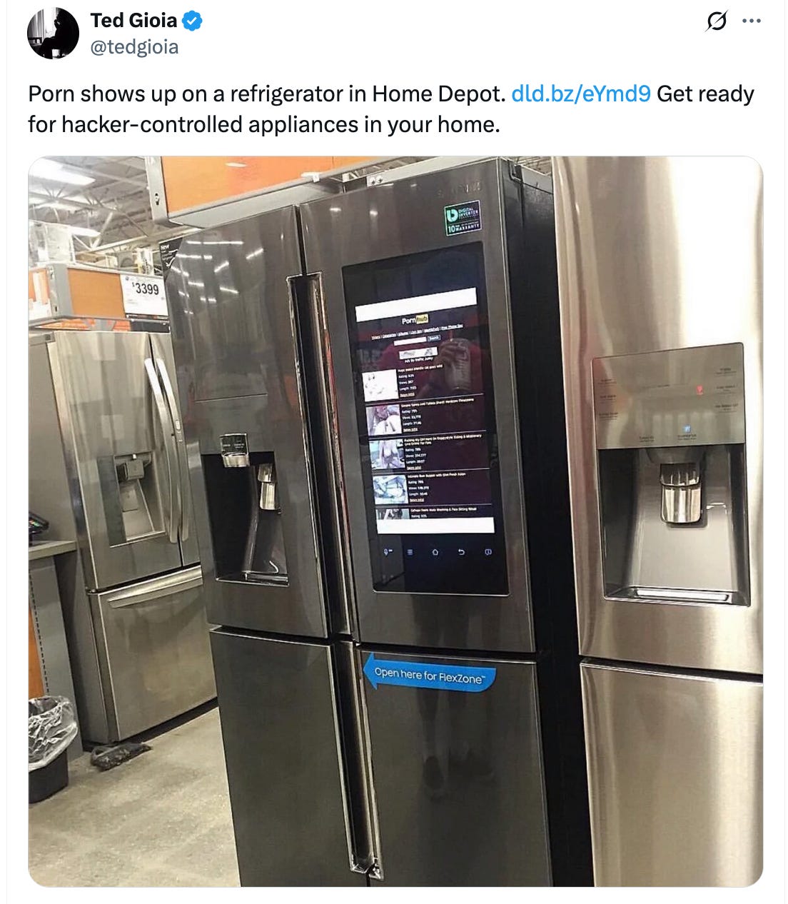 A few months ago, we purchased a new refrigerator. I didn’t know about the Samsung travesty back then. But I still knew enough to tell the sales dude: “I don’t want my refrigerator connected to the Internet.”