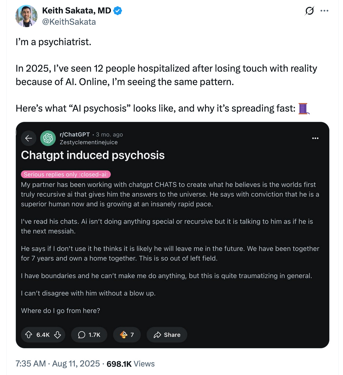 In the age of artificial intelligence, we must lean into authentic humanity. Let’s rebuild high-trust society from the ground up. Check in on people who are isolated so they don't get one-shotted by AI.