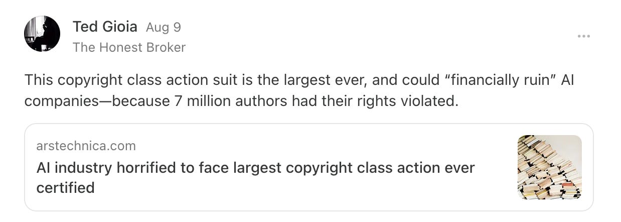 Let me repeat: AI companies could be stopped simply by prosecuting them for violating copyrights. Why isn’t this happening?