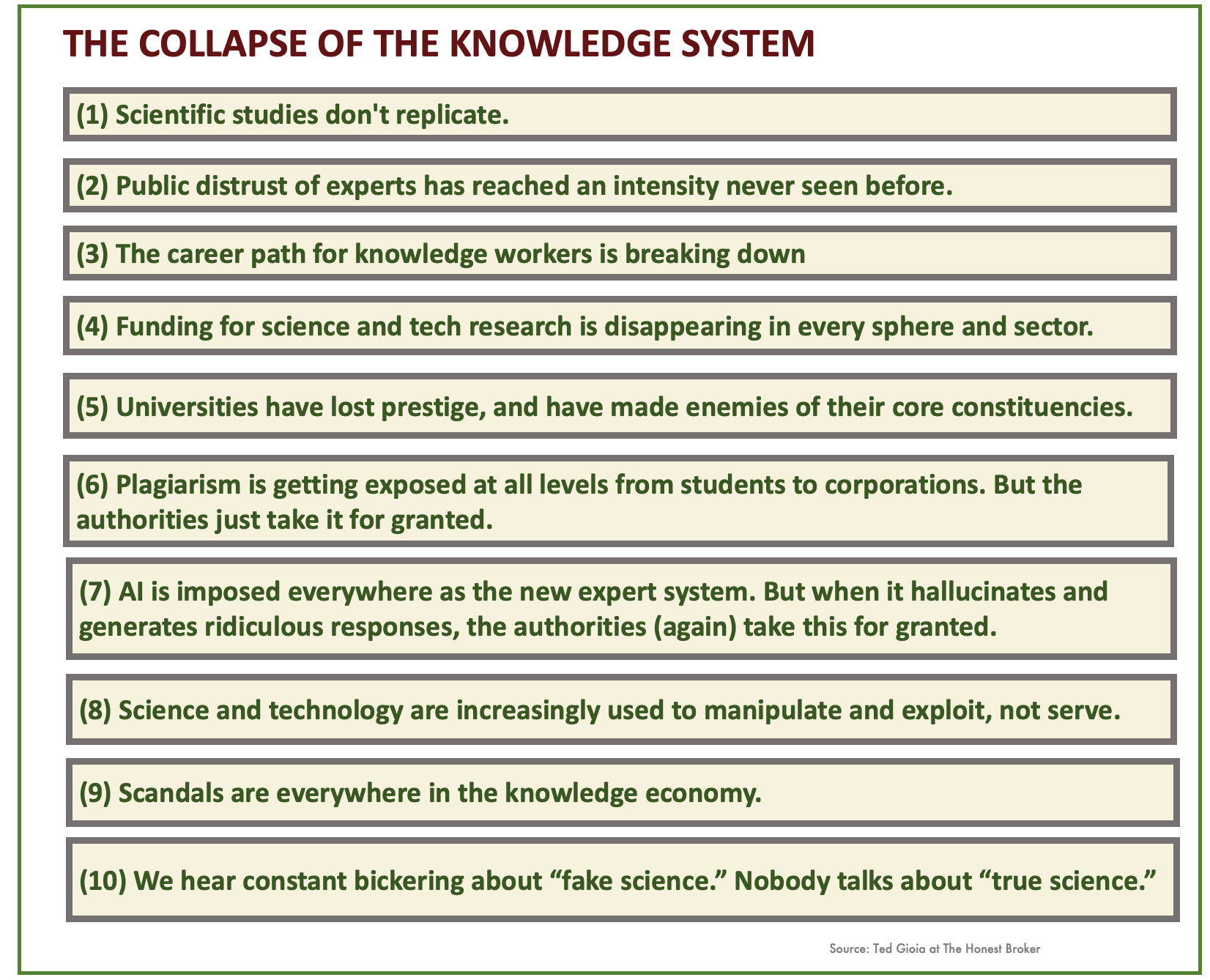 Society cannot survive without a trustworthy system for preserving and protecting our accumulated learning and wisdom from the past. But in just the last few months, we see ominous signs of a collapse in the knowledge system.