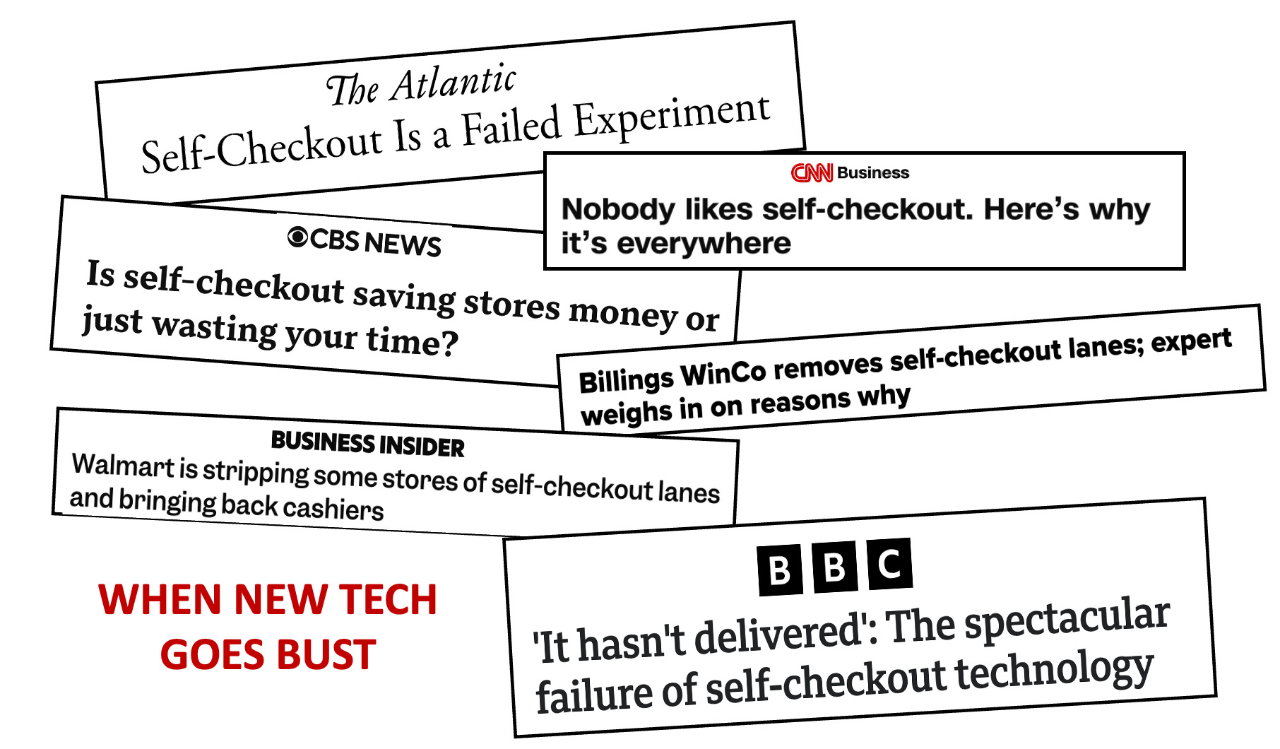 But this isn’t happenstance—it’s a sign of the times. You can’t hide the failure of self-service technology. It’s evident to anybody who goes shopping.