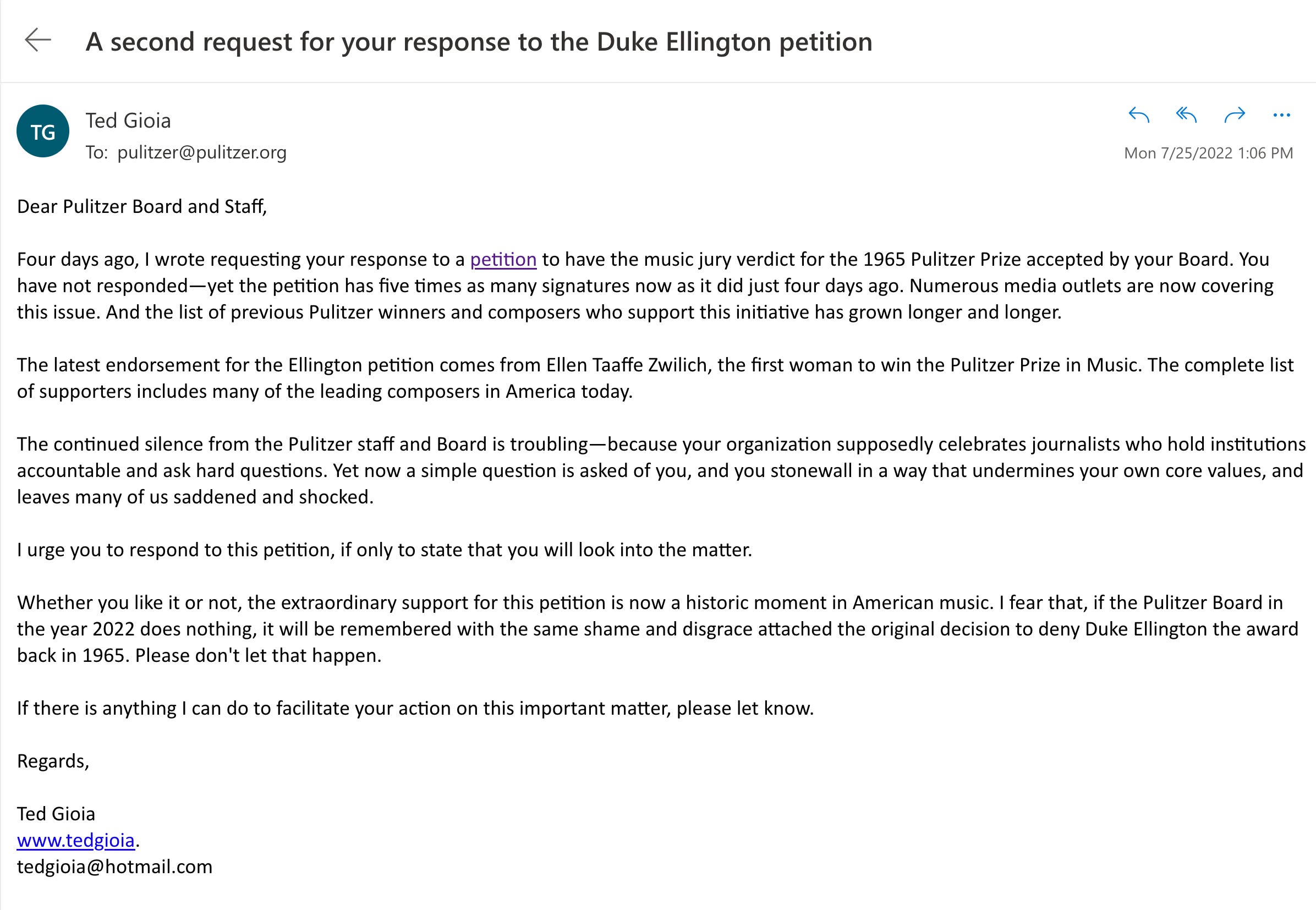 Two Open Letters to the Pulitzer Board and Staff on the Duke Ellington Petition