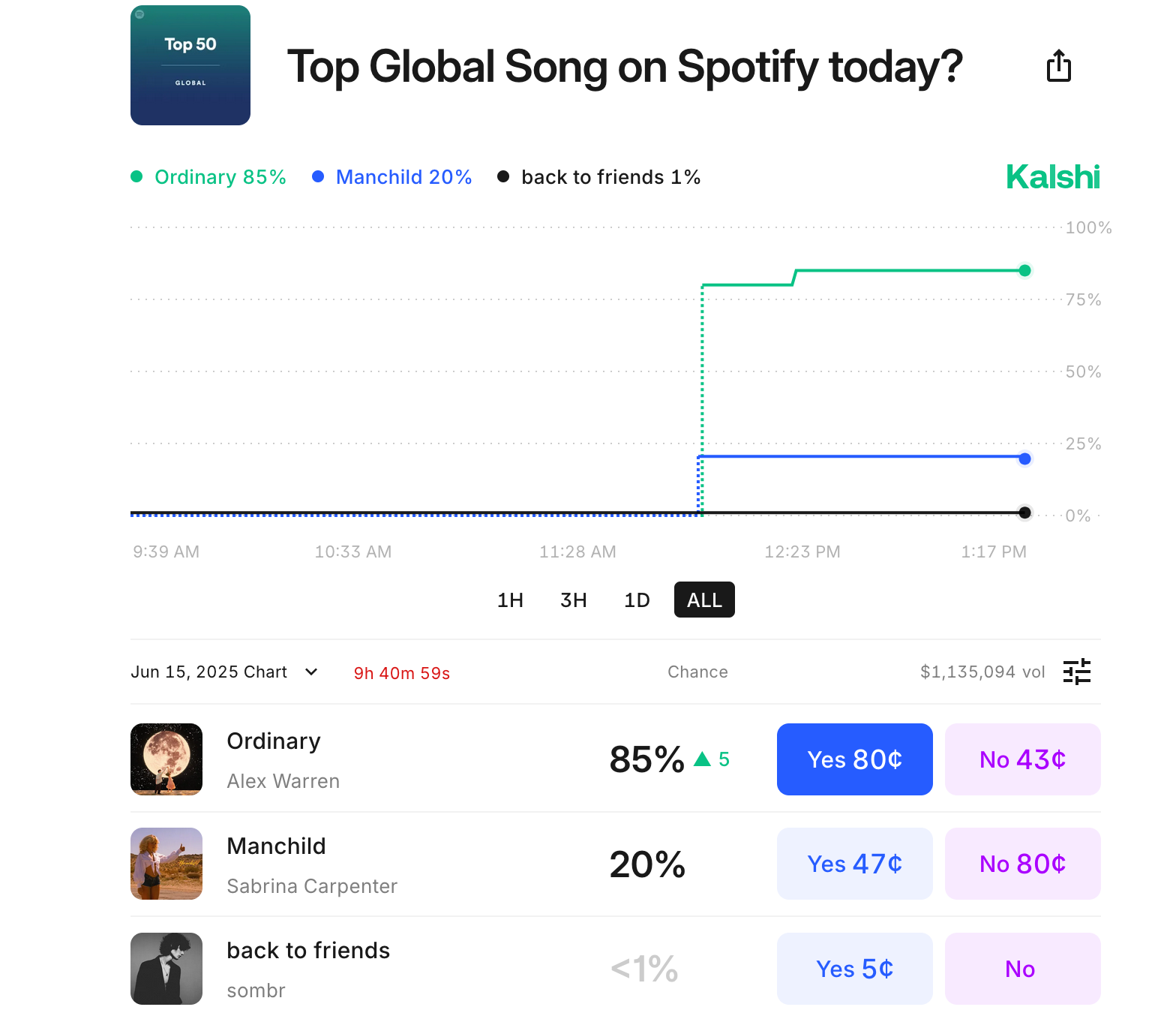 Now the same thing is happening in music. Professional gamblers are wagering on songs—trying to pick the number one track on Spotify.