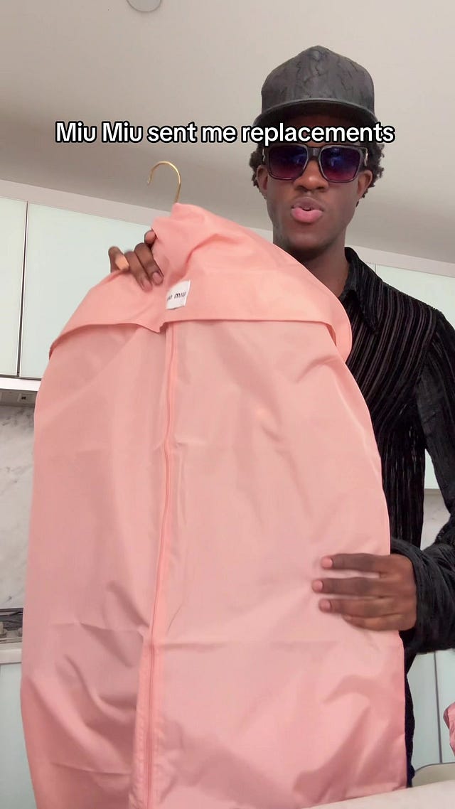 When New York-based model and influencer Wisdom Kaye went shopping at the Italian fashion label Miu Miu and returned home with a haul of clothes he says he spent $18,000 on, he didn’t expect some of the items would fall apart in front of his eyes.